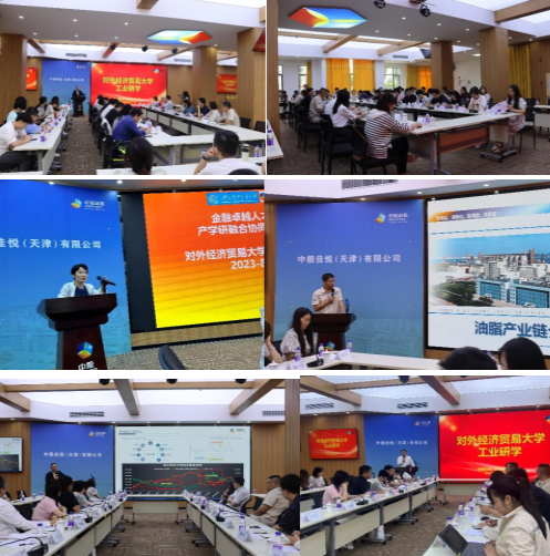 座谈交流环节我校教师冯建芬介绍了果冻传媒 产学协同育人的特色和成效;中粮佳悦刘杲华介绍了油品生产流程、新技术应用、和生产风险管控与产品品质保障措施;中粮期货李楠介绍了油脂企业套保的有效措施;工信部工业文化发展中心李清安介绍了工业文化发展、工业文化遗产保护和通过工业研学提升中国工业的文化实力,助力实现工业强国的工作计划。