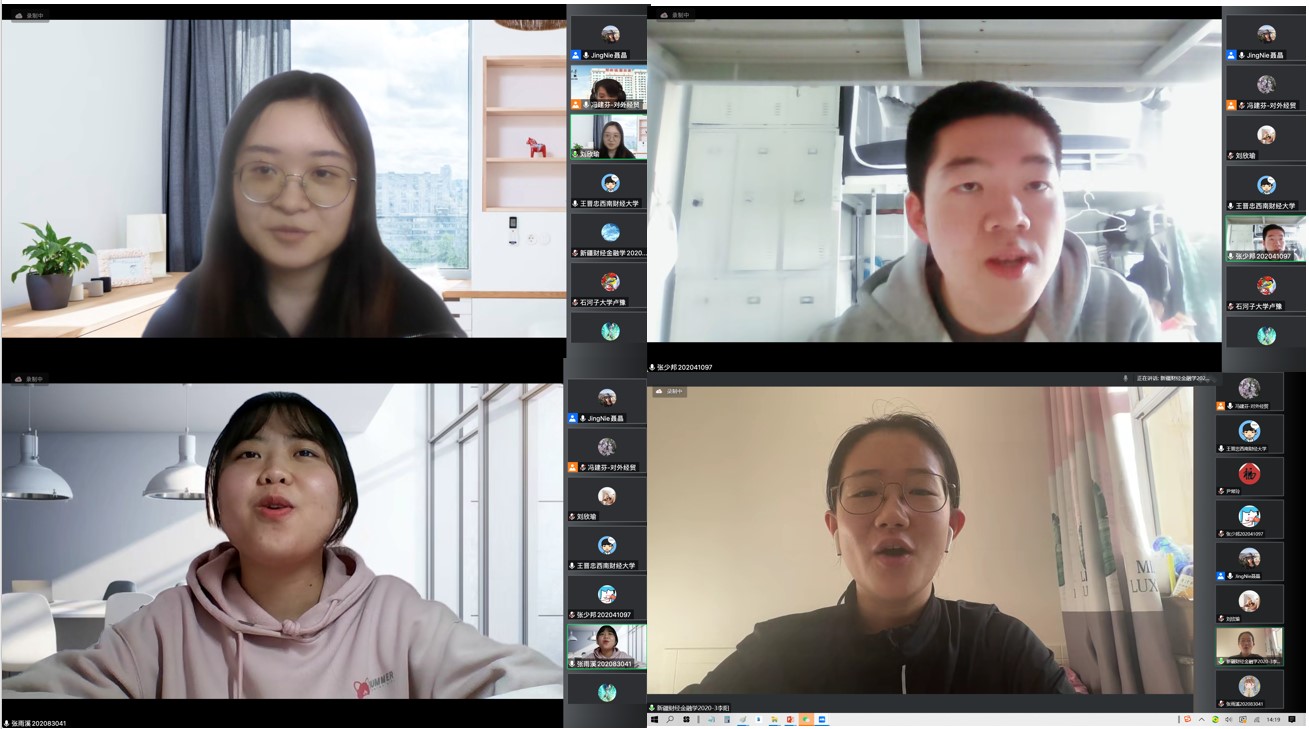 对外经济贸易大学研究生刘欣瑜、本科生张少邦和张雨溪、新疆财经大学学生代表李阳等4名同学分别结合课程学习和交易过程谈了自己参加交易实践的体会。
