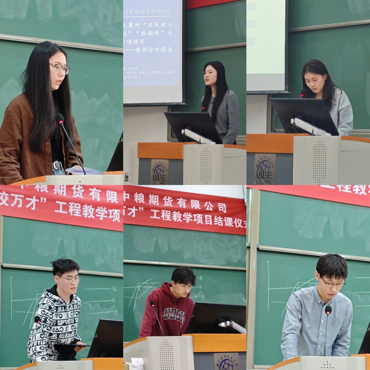《商品期货与期权市场》课程自2017年以来,由中粮期货有限公司承担,已经连续成功开设了8次,为学生讲授了诸多商品衍生品在产业、企业中应用的实践案例、分析技术和行业研究技巧,为我校金融人才提升职业素养,更好地服务实体经济转型提供了重要支持。