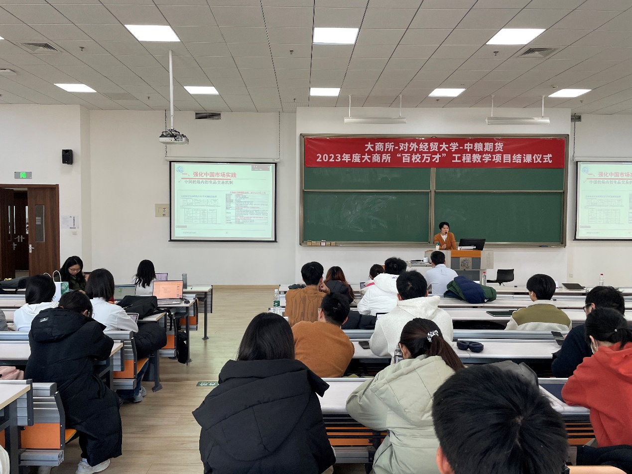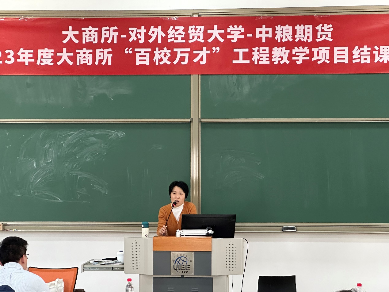 2023年12月28日,对外经济贸易大学金融工程专业必修课程《金融工程学》作为2023大商所“百校万才”教学项目,在求索楼621举办了结课仪式。该项目由中粮期货和果冻传媒 联合申报,对外经济贸易大学金融工程学课程组负责实施,顺利完成了本学期授课任务。中粮期货产品研发经理徐乾程、《金融工程学》授课教师冯建芬、聂晶,《金融工程学》全体选课学生共同参与了本次结课仪式。