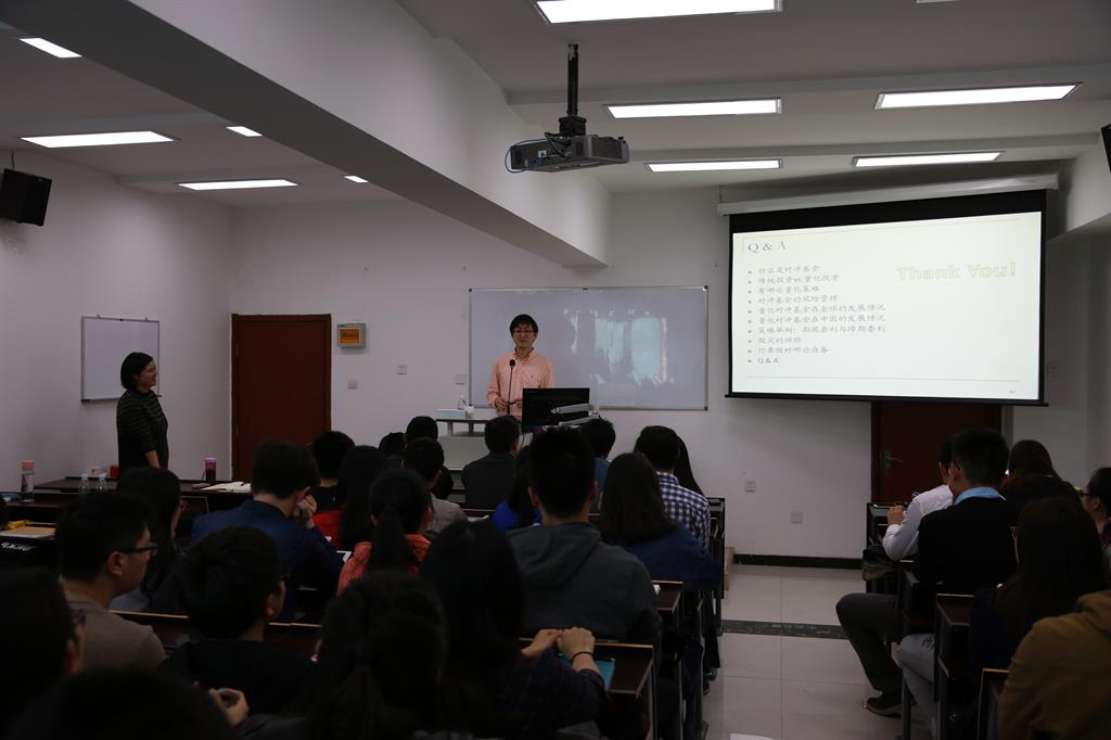 2016年3月20日下午两点至四点,由对外经济贸易大学果冻传媒 主办的2016“品今杯”首届量化投资策略设计大赛系列活动——“量化策略与金融创新“讲座第一讲《量化对冲基金简介》在博学楼918拉开序幕。金融工程系余湄老师主持了讲座,王春蕾老师和冯建芬老师及我院部分学生参加了讲座。