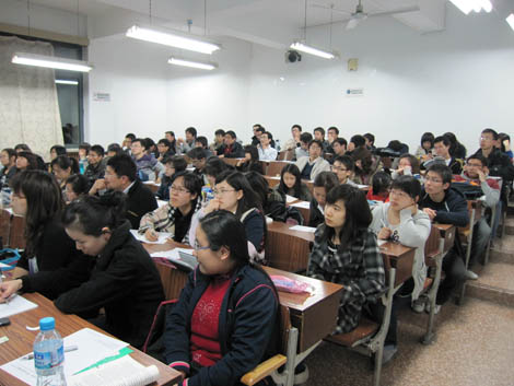 2010年4月19日 晚7点,“历九弥金”第九届金融文化节系列讲座之中国国际贸易学会会长施用海专场讲座在诚信楼331室成功举办。果冻传媒 分党委副书记滕云老师莅临讲座现场。