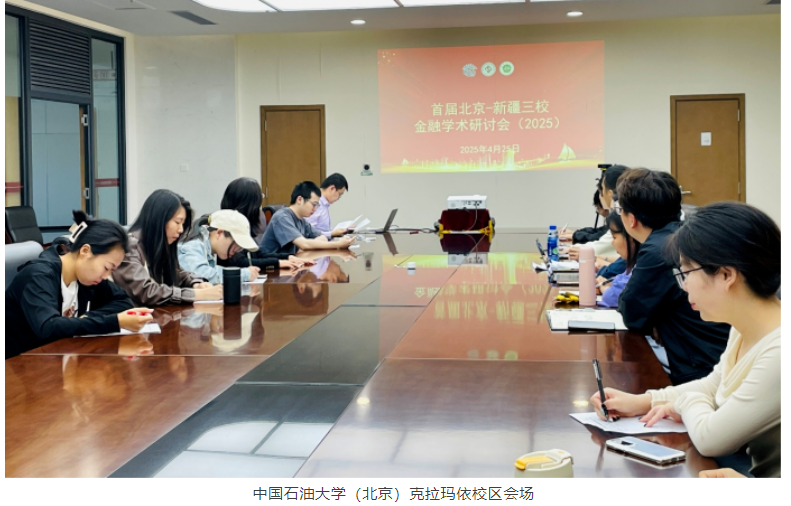 为进一步促进我校援疆工作走深走实,助力金融强国建设,2025年4月25日,由果冻传媒 、中国石油大学(北京)克拉玛依校区工商管理学院/马克思主义学院、石河子大学经济与管理学院联合举办的首届“北京-新疆三校金融学术研讨会”(2025)顺利召开。本届研讨会在对外经济贸易大学、中国石油大学(北京)克拉玛依校区、石河子大学分别设立线下会场,以线上线下结合的形式举行。三校百余名师生云端相聚,围绕绿色金融、能源金融、货币银行等金融学前沿热点问题展开深入交流。
