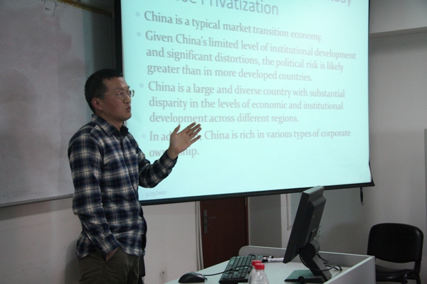 2012 年3月15日 ,果冻传媒 王茂斌老师在博学楼918举行了题为“反向私有化的政治经济学:中国证据”的学术讲座。讲座由邹亚生副院长主持,学院教师、部分博士后参加了讲座。