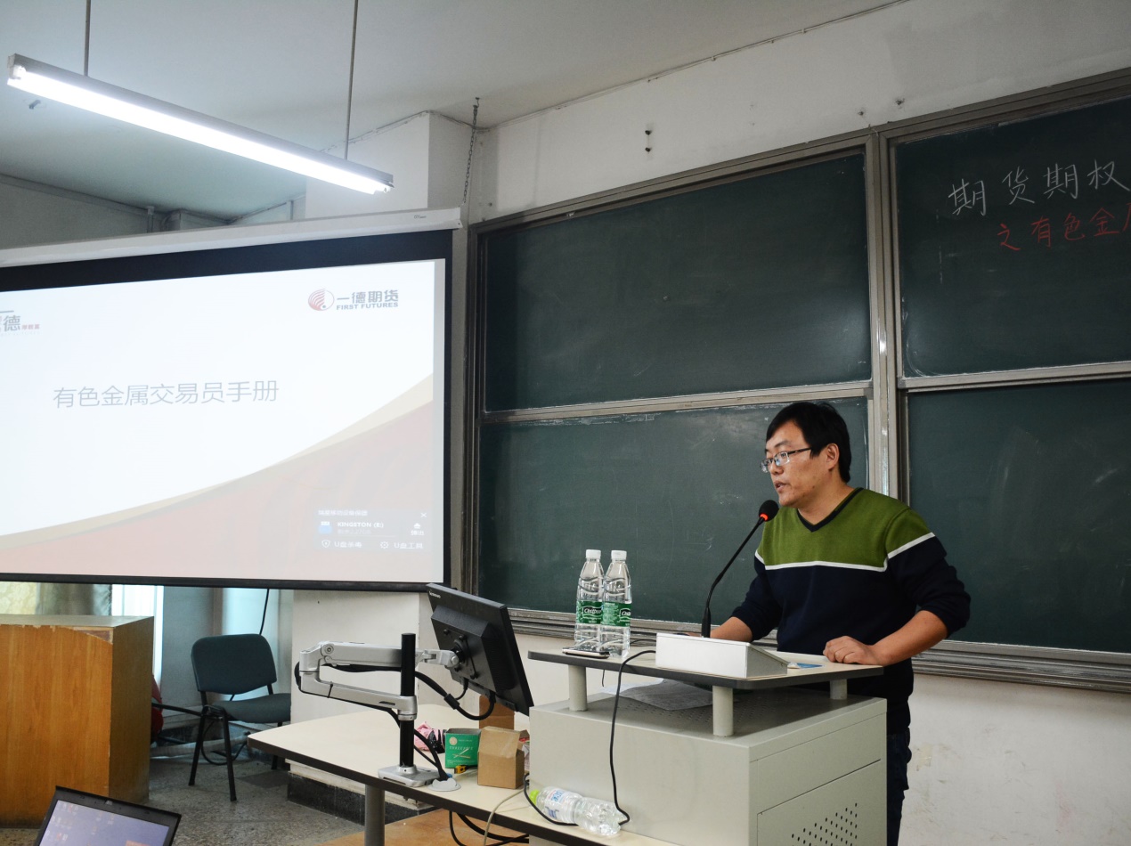 与一德期货联合举办“期货期权实务与交易策略系列论坛”系列讲座。2016年11月24日下午13:00,本次论坛的第二讲由一德期货有色金属分析师吴玉新就“有色金属产业操作实务”专题展开讲授。