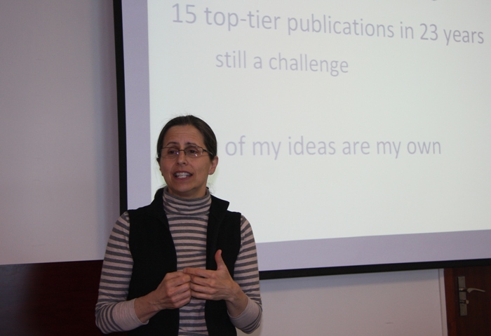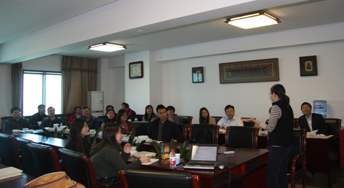 2013 年4月16日 ,密歇根州立大学Kathy Petroni教授应邀来我院举办讲座,题为“如何在美国顶级期刊发表学术论文”。讲座由我院青年教师董毅博士主持,学院分党委书记吴卫星教授及一些教师参加了讲座。