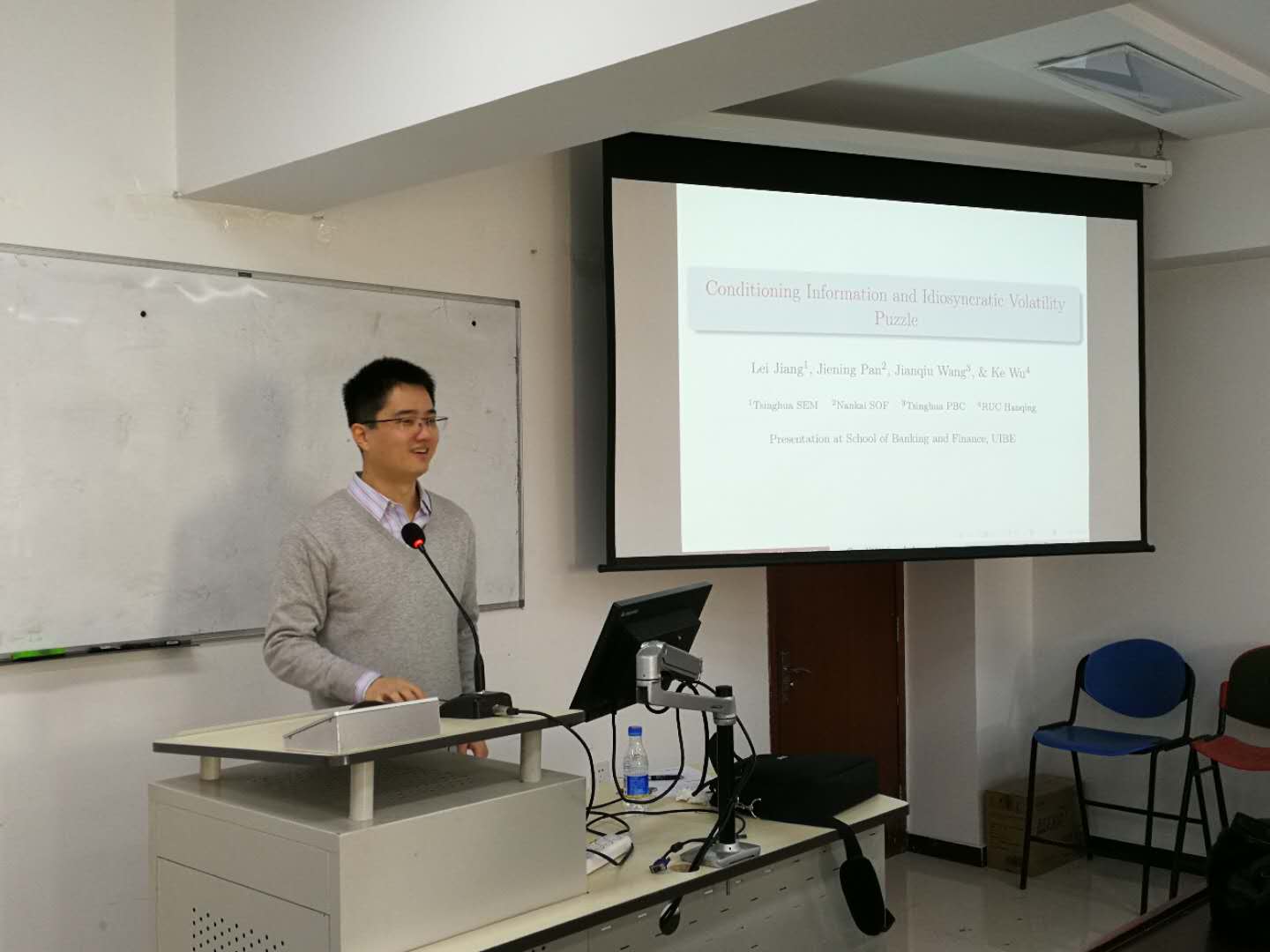 2017年11月09日,中国人民大学汉青研究院金融学助理教授、人大“青年杰出学者”吴轲博士于我校双周论坛进行了题为《Conditioning Information and Idiosyncratic Volatility Puzzle》的学术报告。