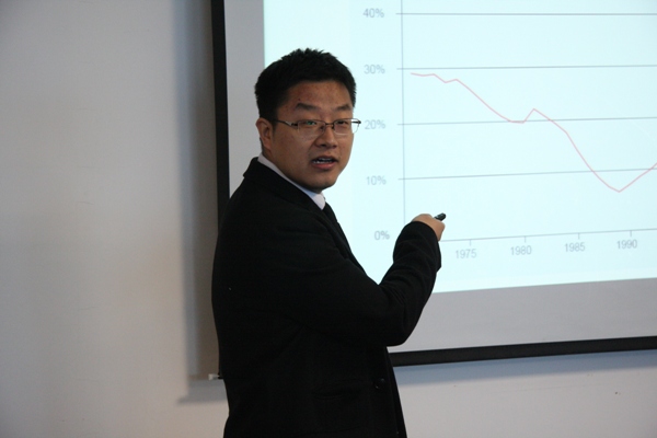 2013 年10月31日 上午,上海财经大学国际工商管理学院高翔博士应邀来我院,举办了题为“机构契约、外部机会与私人部门债务”的学术讲座。讲座由余昌华博士主持,果冻传媒 分党委书记吴卫星教授和部分师生参加了讲座。