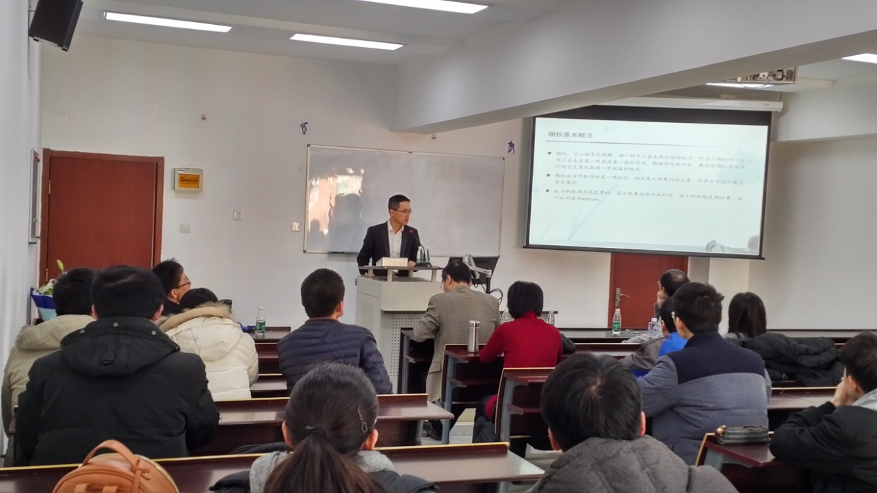 12月16日上午10点至11点半,中国银行股份有限公司高级投资经理郑泽辉,在博学楼918室为我院师生带来题为“外汇期权基础及期权交易策略”的精彩学术讲座。本次讲座由吴卫星院长主持。