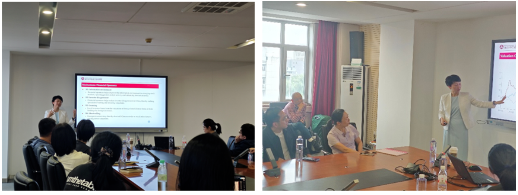 在讨论和互动环节,在场嘉宾就金融市场开放过程中,资金的流入和流出对估值水平变化的差异性作用;以及中国市场特有的“壳价值”问题对估值造成的潜在影响进行了充分交流和讨论。最后讲座在热烈的掌声中圆满结束。