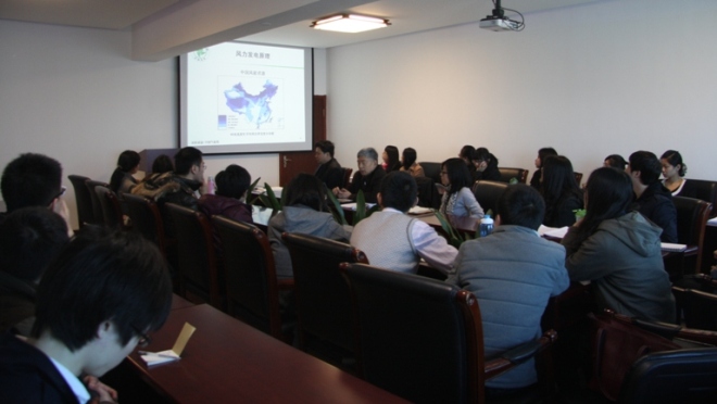 2013 年3月27日 下午,贺徳馨教授在博学楼925给我院广大师生带来了一场关于风能知识的讲座。作为风能领域的顶尖科学家,贺教授的讲座不仅内容充实,而且具有相当的高度。贺教授首先介绍了风能发展的总体背景,并以通俗易懂的方式将风能资源、风功率密度等专业名词呈现给听众。随后,贺教授介绍了全球以及我国近几年来风能发展的基本现状、前景及相关政策,使得大家对我国风电行业当前及未来的走势有了更进一步的认识和判断。接着,结合经济、金融、保险等相关专业知识,贺教授详细讲解了风电成本、风电投资,以及风电产品质量、运行安全与风电保险等。从中,听众不仅了解到了当前国内外风电的融资途径及融资总量,同时也看到了风电市场潜在的巨大投资机会与研究空间。