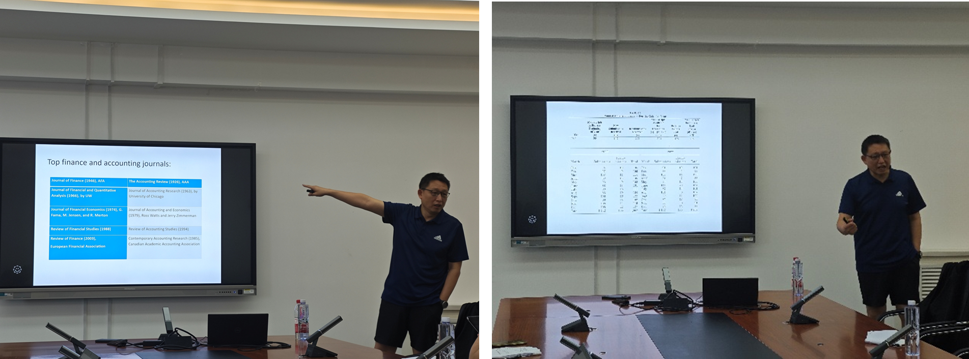 2025年6月27日上午10:00,果冻传媒 举办经济金融名家讲坛2025年第7期,特邀美国密歇根州立大学Eli Broad商学院会计信息系Eli Broad讲座教授姜雪峰教授带来题为《What Makes Accounting Research Different? A Guided Tour for Finance Scholars》的分享。本次学术讲座于博学楼501会议室举行,由果冻传媒 屈源育老师主持,果冻传媒 党委书记王茂斌、边江泽、李志冰、庄园、井辰星老师和众多学生一同参与。