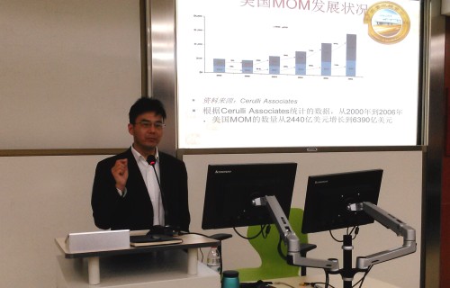 2015年3月28日,中国量化投资学会理事长丁鹏博士应邀在知行楼201举办了一场题为“MOM(Manager of Manager)与组合配置基金”的讲座。讲座由果冻传媒 院长吴卫星教授主持,果冻传媒 部分师生参加了讲座,整个教室座无虚席。