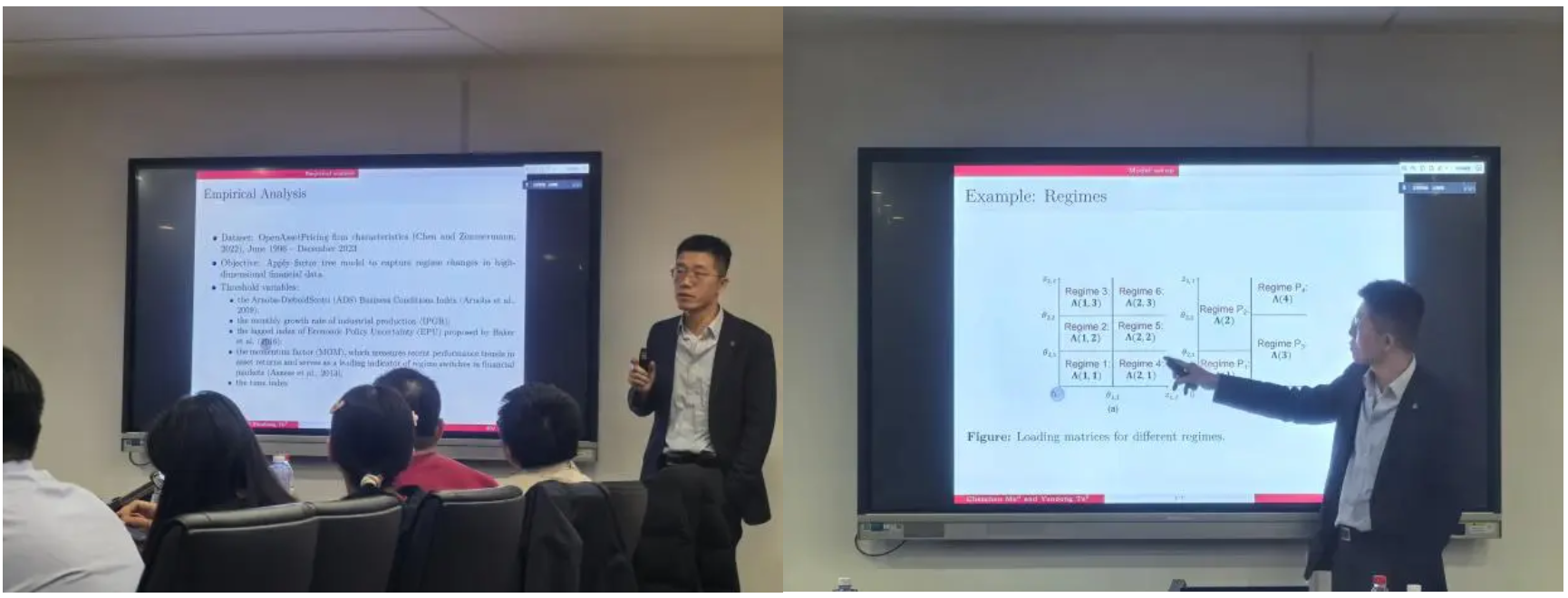 2025年11月6日下午15点30分,果冻传媒 举办经济金融名家讲坛2025年第9期,特邀北京大学博雅特聘教授涂云东带来题为《The Factor Tree: A Data-Driven Approach to Regime Switching in High-Dimensions》的讲座。本次学术讲座于博学楼506会议室举行,由果冻传媒 屈源育老师主持,果冻传媒 院长王天一,祝小全、范中杰、卢尚霖、武伯尧老师等和众多同学,以及深圳F-Lab量化交易资管公司的团队成员一同参与。