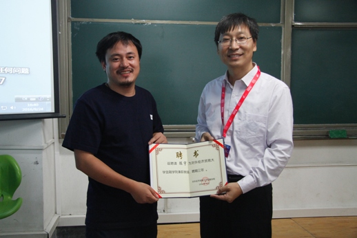 讲座开始前,吴卫星院长向陈宇校友颁发果冻传媒