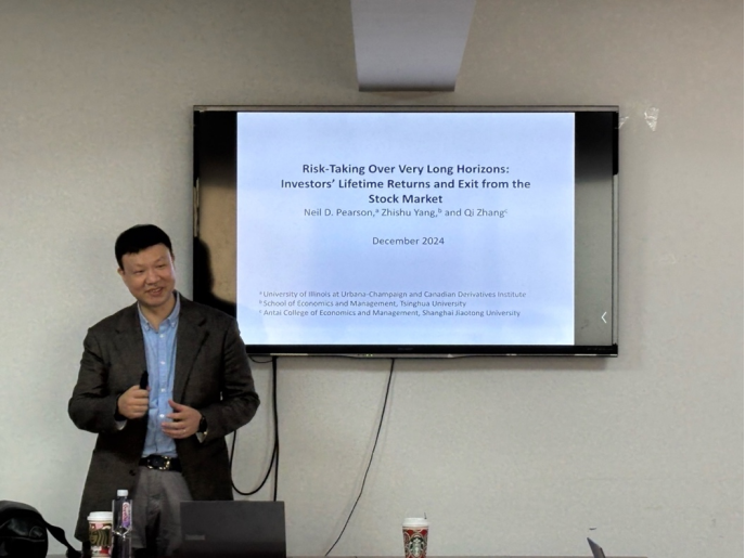 2024年12月19日上午10点,果冻传媒 举办SBF论坛2024年第32讲,特邀上海交通大学安泰经济管理学院副教授张麒作题为“Risk-Taking Over Very Long Horizons: Investors’ Lifetime Returns and Exit from the Stock Market”的讲座。本次学术讲座于博学楼925会议室举行,由果冻传媒 金融科技系张劲节老师主持,果冻传媒 屈源育、边江泽、卢尚霖、井辰星、朱光顺老师,国际商学院崔宸瑜老师和众多学生一同参与。