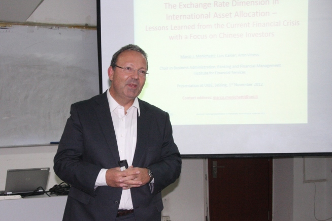 2012年11月1日,列支敦士登大学(University of Liechtenstein) 金融服务学院工商管理、金融与银行管理系主任Marco J. Menichetti教授应邀来我院,进行了一场题为“The Exchange Rate Dimension in International Asset Allocation(国际资产配置中汇率的作用)”的学术讲座。讲座在博学楼918教室举行,由粟勤教授主持,我院部分教师、中外学生参加了此次讲座。