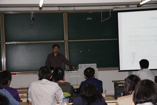 2010 年 5 月 5 日 晚,香港理工大学副教授Dr Steven X. Wei来到我院,在SBF论坛为我校师生发表精彩学术报告。报告会前,果冻传媒 丁志杰院长、郭敏书记、邹亚生副院长等会见了魏教授,并就开展学术合作等问题进行了恳谈。讲座会由我校海归博士边江泽主持,我校师生100余人参加了报告会。