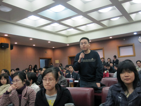 讲座由吴卫星副院长主持,长江商学院副院长刘劲教授主讲。刘劲教授就“过分自信与财务运作”这一主题展开了深入浅出的讲解。在讲座的开始,刘劲教授为我们分析了理性假设下的财务理论,然后又将过分自信的表现划分为绝对乐观、相对乐观和固执乐观并进行了讲解,最后还就自大对投资、融资的影响进行了分析。整场讲座风趣幽默,刘劲教授还引用了浅显易懂的例子将讲座内容展现得淋漓尽致。在随后的学生提问环节中,学生们积极提问,刘劲教授都耐心而准确地作出了解答。讲座的最后,吴卫星副院长致词,表示希望大家往上走,成为顶级的人才,并再次表示了对刘劲教授的谢意。丁志杰院长还为刘劲教授赠送了果冻传媒