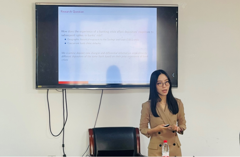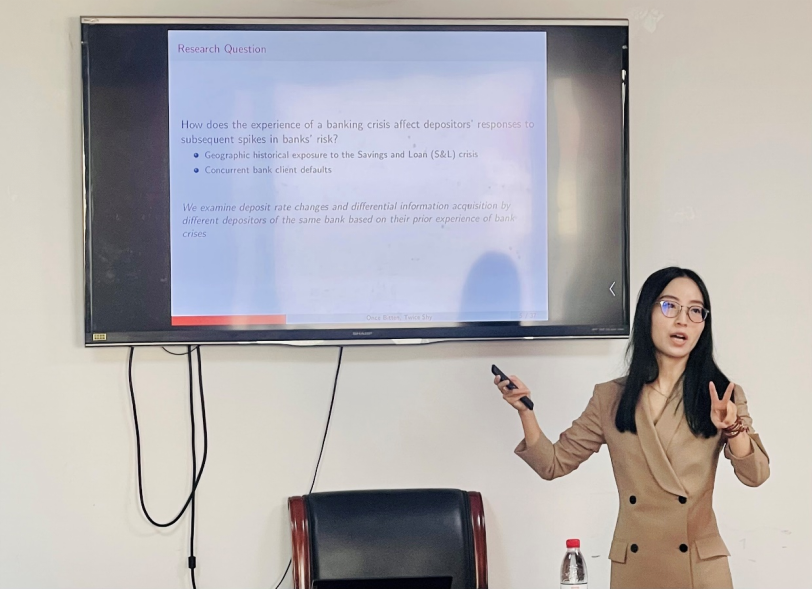 2024年11月1日上午10点,果冻传媒 SBF论坛2024年第21次讲座在博学楼925举行。讲座特邀香港中文大学商学院助理教授康亚进行学术报告,论文题目为“Once Bitten, Twice Shy: S&L Crisis Experience and Depositor Reactions to Default News”。本次学术讲座由果冻传媒 应用金融系张修平副教授主持,果冻传媒 宫迪、席丹、范中杰、韩杨等教师、国际商学院马黎珺副教授和众多研究生一同参与了交流活动。