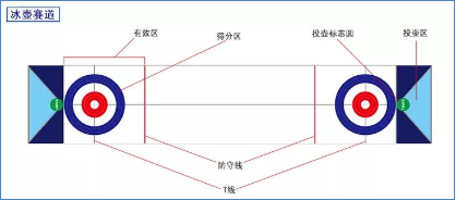 比赛时双方队员轮流登场,将冰壶推入得分区。