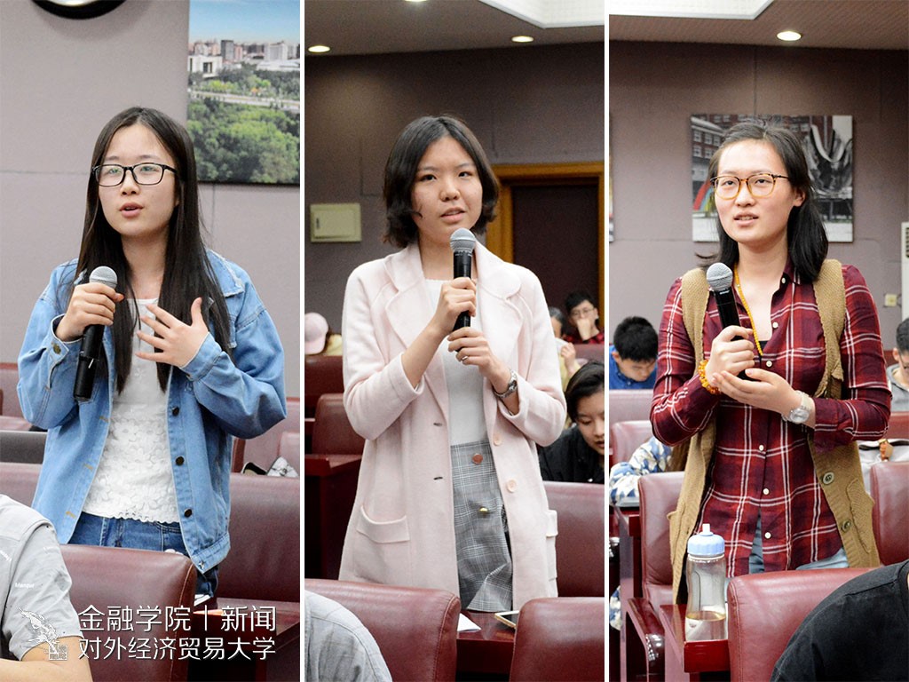 随后的提问环节中,吴志坚指出想要从事互联网金融行业,编程知识并不是必须的,具有“不可或缺性”的特质也有很多,比如耐力、体力等,其中最重要的就是在某一方面快速的积累自己,做到“术业有专攻”。史明坤则幽默地说“工作岗位不是我个人特质的需要,而是生存的需要”,他认为工作并不是学了什么做什么,而应该是要做什么而学什么,在工作以后仍然且必须根据岗位来学习。籍此可知,金院学子除专注于学业外,也需懂得锻炼自身的学习能力,为未来的职场之路做好铺垫。