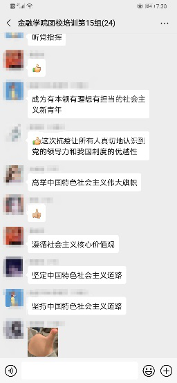 本次团校培训后,同学们深受启迪,积极参与小组讨论,反响热烈。小组讨论内容主要包括对目前国际形势、作为青年力所能及的事以及线上学习的困惑和心得。学生会文艺部干事谭琦说:“素质教育有别于课堂教学。在我看来,素质教育的重点是思想教育。思想教育包括意识形态教育和态度教育。意识形态教育具有鲜明的政治性。我国是一个社会主义国家,组织结构自然要具备社会主义的某些具体特征,包括以人民为本的群众性等多种特性。团学培训、学生工作中最能培养的是态度教育。包括工作态度、基本礼貌等。一言以蔽之,即“先做人,后做学问”。这次培训之后,我会更加注重提升个人素质,努力改进工作态度,做一个受欢迎的、被认可的优秀团员、团学生干部。”分团委组织部干事吴书健说:“作为一名团员,从我们庄严宣誓的那一刻起,肩上便担负着共青团员的责任,一言一行都应显示出个人基本素养;以服务的心态去对待日常的工作,脚踏实地的做好每一件小事。无论是日常交流的礼仪言表,或是工作中严谨认真、踏实肯干的态度,以及积极进取、提升自我的精神面貌,都应是我们在心中时刻铭记的标杆。”
