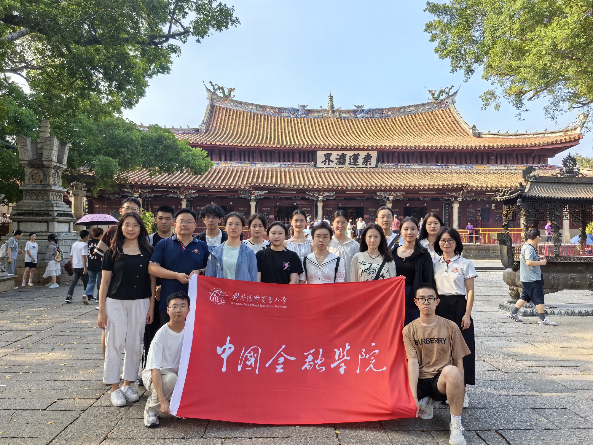 8月7日下午,鸿儒师生一行乘车前往开元寺。在讲解员的带领下,参观了泉州的地标建筑——大雄宝殿和东西塔。开元寺历史悠久,始建于唐初,兴盛于宋,后于明清修复,如今是泉州最具代表性的世界文化遗产。由于身处泉州这一中外交流枢纽,这里的宗教文化、建筑风格,都凸显着中外融合的多元性特征。从“桑莲法界”的来由,到“镇国”、“仁寿”两座石塔的风格特点,鸿儒师生们沉浸在泉州历史上繁荣的海外贸易和发达的国际交流带来的浓厚而独特的文化氛围当中。