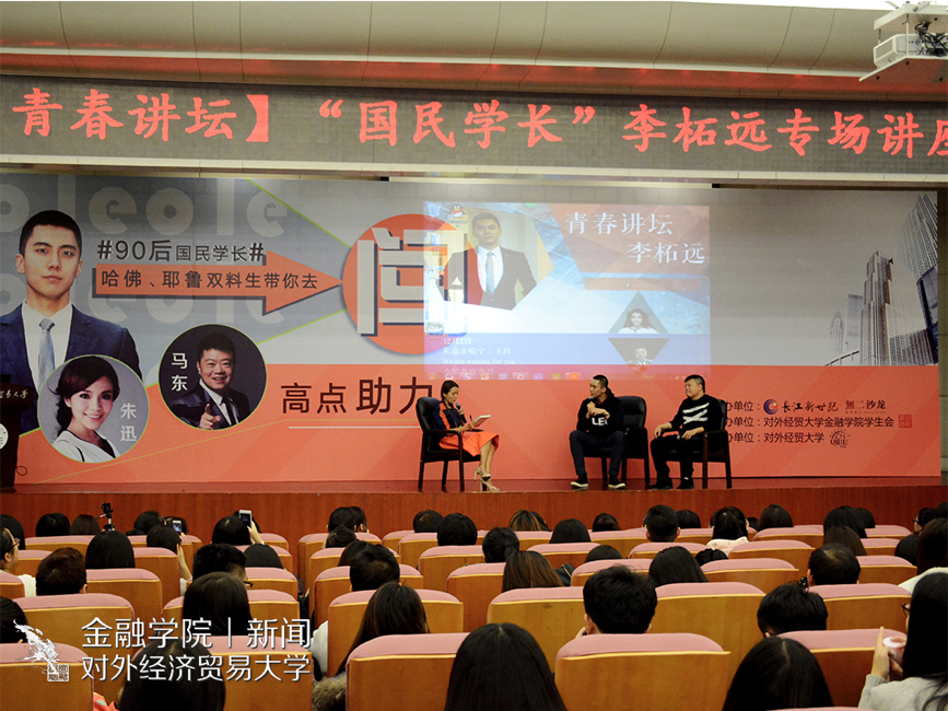 分团委、学生会外联部主办的青春讲座之李柘远正式开场。本次到场嘉宾有《奇葩说》主持人马东,央视著名主持人朱迅,长江文艺出版社副总主编金丽红和副社长黎波,果冻传媒