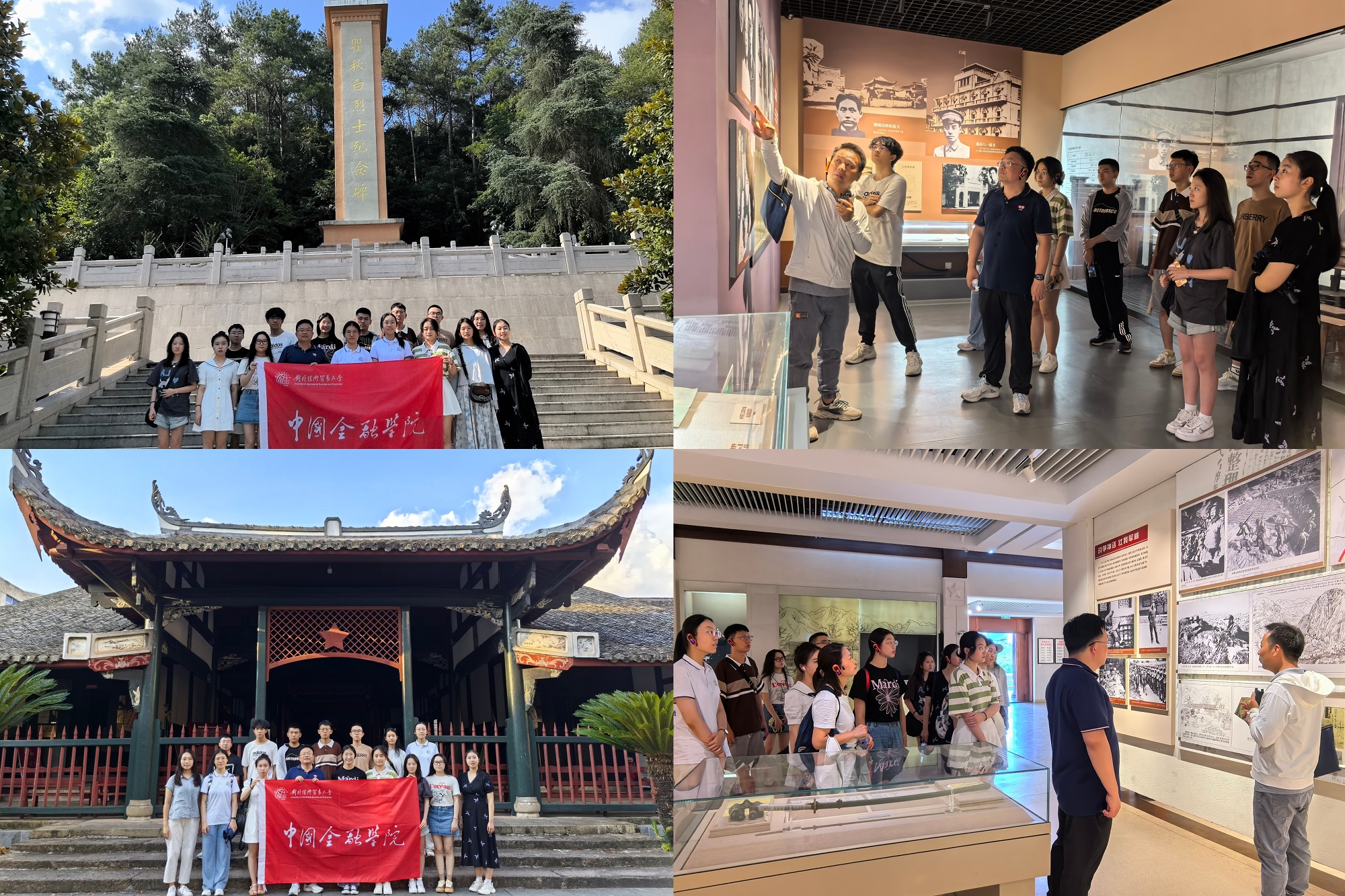8月6日上午,鸿儒师生们乘车前往江西瑞金,实地参观了叶坪和沙洲坝革命旧址群。沿着革命先辈的足迹,鸿儒师生们在旧址前驻足凝思,认真聆听讲解员讲述那段烽火连天的革命历史。在第一次全国苏维埃代表大会会址,师生们坐在谢氏祠堂的长凳上,闭上眼睛,仿佛能够穿越时空,想象革命先辈在此处开会严肃庄重和慷慨激昂的场景;当大家走进毛主席和其他领导人的办公室时,被办公室的简单朴素所震撼。几平米的小隔间,一张桌子,一把椅子,一个木板床,舍不得插两根灯芯的油灯,革命先辈们为中国共产党的发展鞠躬尽瘁,无私奉献。在中华苏维埃共和国国家银行旧址,师生们更是深刻感受到了革命先辈们在艰苦条件下,仍然坚持金融事业,为革命胜利奠定坚实基础的不屈精神,也更加深刻理解了金融工作的艰苦性和重要性,更加珍惜现在的金融环境和发展机遇;在红井和中华苏维埃第二次全国代表大会旧址,同学们见证了中国革命的激情与理想,也深刻感悟红军战士和群众的深厚情谊。