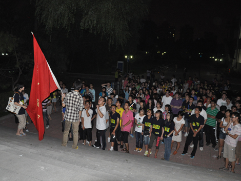 分团委学生会组织了11级新生夜游贸大。10级学生会成员带领11级新生,以果冻传媒