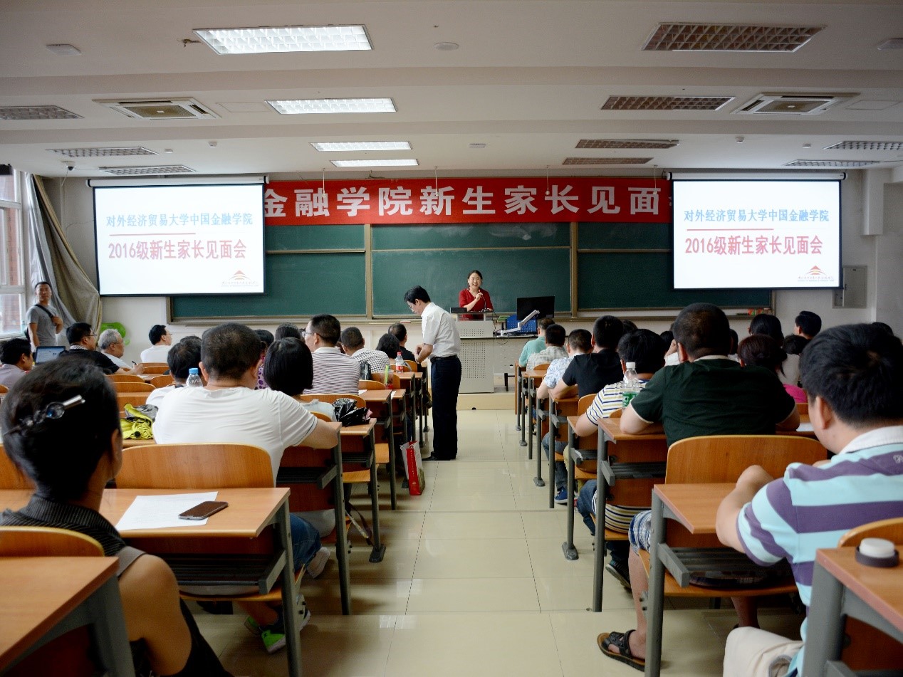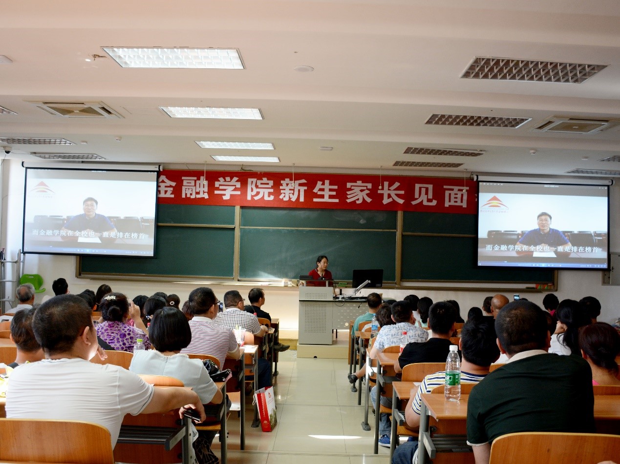 随后,范言慧副院长从学生培养的角度介绍学院情况。他主要介绍了本院的三个专业——金融学、金融工程学和投资学的几大特色,并侧重介绍了金融工程专业今年新增的量化金融实验班。此外,范言慧还从师资角度强调了我院出色的教学水平,绝不会辜负家长期望。同时希望家长提醒学生不要沉溺于高中的优异成绩,不能放松,也不能迷恋于物质,提高大学生活的质量。