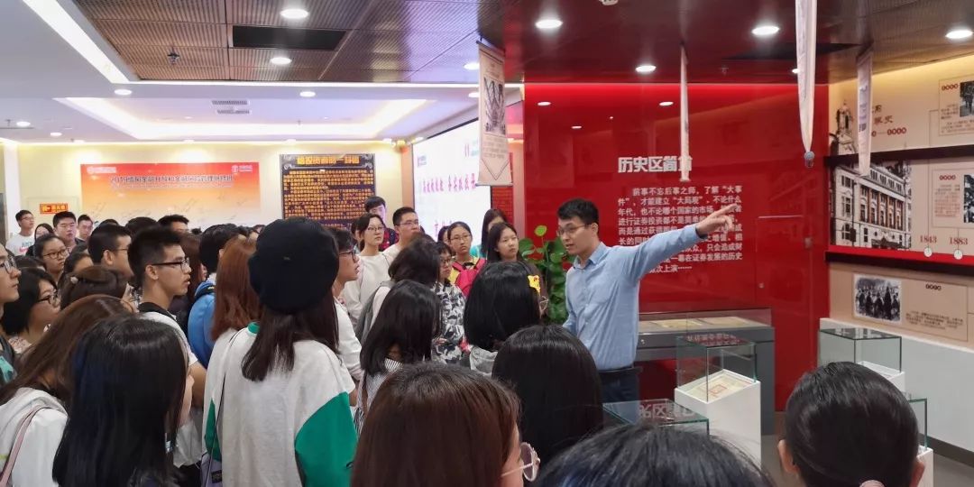专家讲解后,同学们依次参观了教育基地的四个基地展示区,分别详细了解了证券行业在历史沿革、业务操作、投资理念和风险管控方面的相关知识。