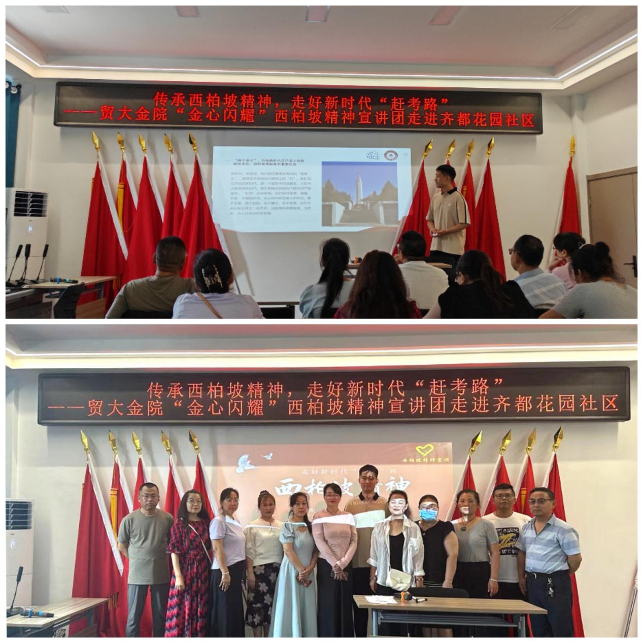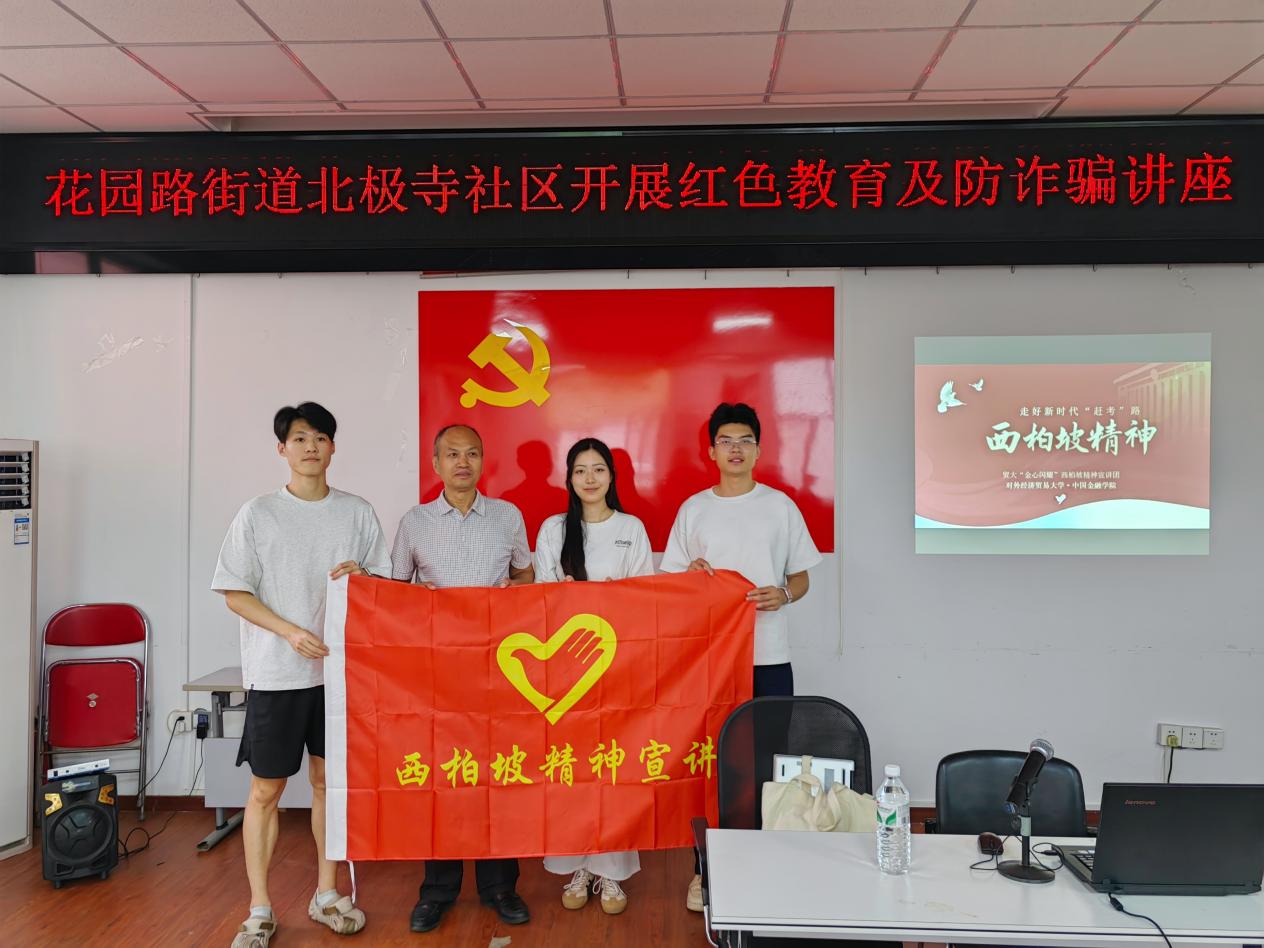 2024年5-8月,“金心闪耀”团队组建后,以饱满的姿态、奋进的状态,精心设计宣讲方案,认真学习准备宣讲资料,以线上宣讲和线下活动相结合的形式,走进支部、班级、社区、企事业单位等,开展“弘扬西柏坡精神,走好新时代赶考路”主题宣讲系列活动,其中西柏坡精神宣讲10场,宣传推介3次。宣讲活动覆盖北京市、山东省、河北省等多省市,服务对象包括对外经济贸易大学学生、社区居民、企事业工作人员等,受益群众三百余人次。
