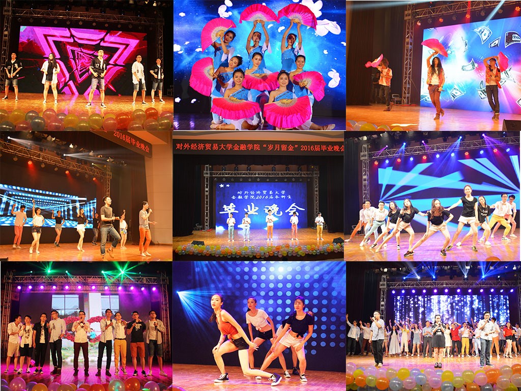 多人舞蹈《茉莉花》舞姿轻盈俊俏,《甄嬛传新编》幽默欢脱,展示出金院2012级毕业生们的青春活力。无论是舞蹈《I want you to know》,还是之后的歌曲串烧《你被写在我的歌里》,都淋漓尽致地表达了学子们对终将离别校园的深深不舍。而《支部那些事儿》则以党支部学子的日常工作生活为背景,贯穿求索记忆,将大家带回到温暖的回忆中。2012级辅导员曲小杰老师伴随着温情的话语缓缓上台,“要学会告别,学会爱与感恩,要学会迎接新的生活”,情到深处,她不禁热泪盈眶。接下来,反串歌舞表演《农村艺术团汇报表演——给我们的歌》奔放热情,话剧《太阳的后羿》风趣活泼,舞蹈《从今天开始 bang bang bang 》活力四射,独唱节目《惠园遇青》将学子们对惠园的依恋揉进美妙的歌声里,歌声浅浅,唱进每位金融人的心中久久不息。