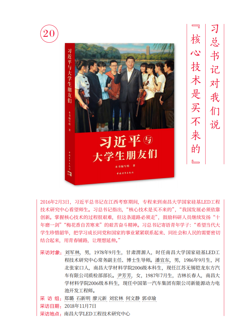 采访组:请回忆一下习近平总书记离开南昌大学工程训练中心和江风益教授实验室时的情景。