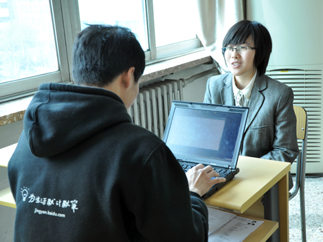 首先开始面试的是China Daily。作为唯一的一份全国性的英文日报,China Daily的问题也与众不同,从个人兴趣到历史人物,范围涉及广,从不同角度了解面试者,而面试者亦侃侃而谈,整个氛围轻松自然。而后开始面试的华泰证券与联讯证券,则更注重专业知识的掌握与过往的实习经历。华泰证券采用单面形式,将证券方面的问题抛给面试者,而贸大学子过硬的专业知识在有条不紊地结合实际与理论回答的过程中得以精彩体现。联讯首先进行有关金融、债券等问题的笔试,对面试者达到一个初步认识,继而在单面中就实习工作提出问题,面试者们谦逊有志的回答引得面试官频频点头微笑。平安保险的面试独具特色,面试官不急于了解各位面试者,而是首先让他们了解平安保险公司的经营与内部情况,为面试者提供一个快速适应工作的台阶。银河证券的面试,更似一次双方的自由交流。面试官时而假设工作中可能遇到的各种场景,向面试者询问解决办法,时而又放眼于中国股市,给出数据供面试者分析。各个面试者的热情被这些看似刁钻却充满挑战的问题激发,纷纷各抒己见、畅所欲言。在此之后面试官也给了每一个面试者向自己发问的机会,使得面试者受益匪浅。百度的面试官不着正装,首先就让面试者感到放松。对互联网的看法、网络在生活中的作用、智力问答,这些贴近自己生活的问题使得面试者们倍感亲切,饶有兴趣。而在下午的第二轮面试中,面试官着重考察面试者的应变能力。贸大的学子们在形式多样的问题前不忙不乱,沉着应对,各具特色的回答给面试官留下了深刻印象。