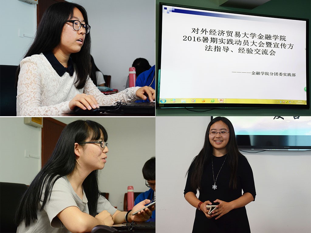 最后,2015年暑期实践优秀团队代表李秀芬结合自己团队实践经历,就实践过程中需要注意的事项与如何写好实践调研报告两个方面分享了团队实践经验。她指出:1.作为队长,要事前搞定好团队食宿问题,查好实践地的地理、天气、交通等情况,以便安排好实践行程;2.确定好每天的人员安排,避免每天行程结束后忘记上传新闻稿与报备实践情况;3.要关注团队气氛,避免因队员之间的小误会、小矛盾而影响实践进程;4.在选择地点的问题上,选择有熟人联络的地点,确保实践安全。谈到实践报告,她强调到实践报告注重的是数据分析论证,给人说服力;数据多用图表呈现出来,简洁明了,通俗易懂。她还提醒各位队长在实践中的很多细节,要多阅读实践手册,多和指导老师沟通交流,听取指导意见等。