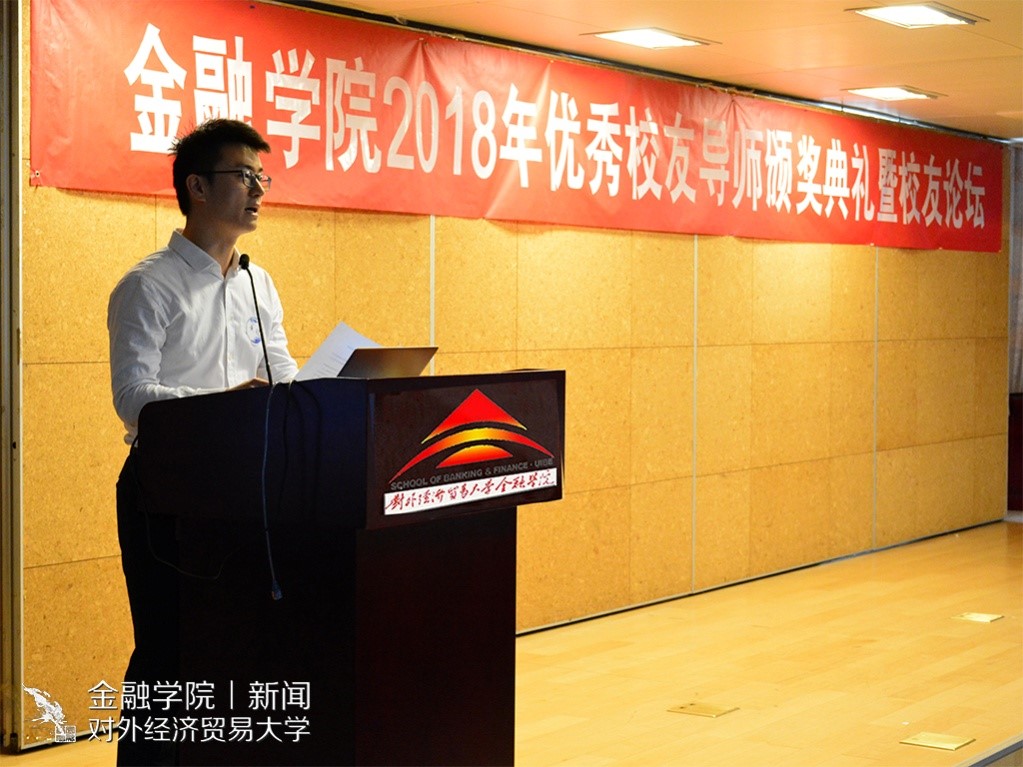 在校友导师工作方面起步早、坚持好、受益面广、收效好,一直走在全校前列,希望广大校友以校友导师制为载体,将贸大精神发扬光大。
