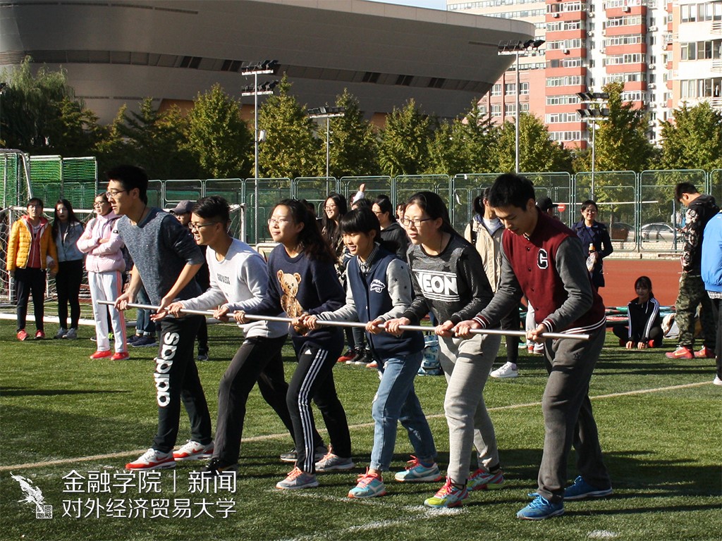 今天,站在比赛场上,我们有的不是紧张,而是满满的自信。“金融!金融!金融”这个响亮的前进口号,让我们一开始知道胜利属于自己!没错,第一,这是我们金融的排名。问鼎贸大,这是我们金融的宿命!