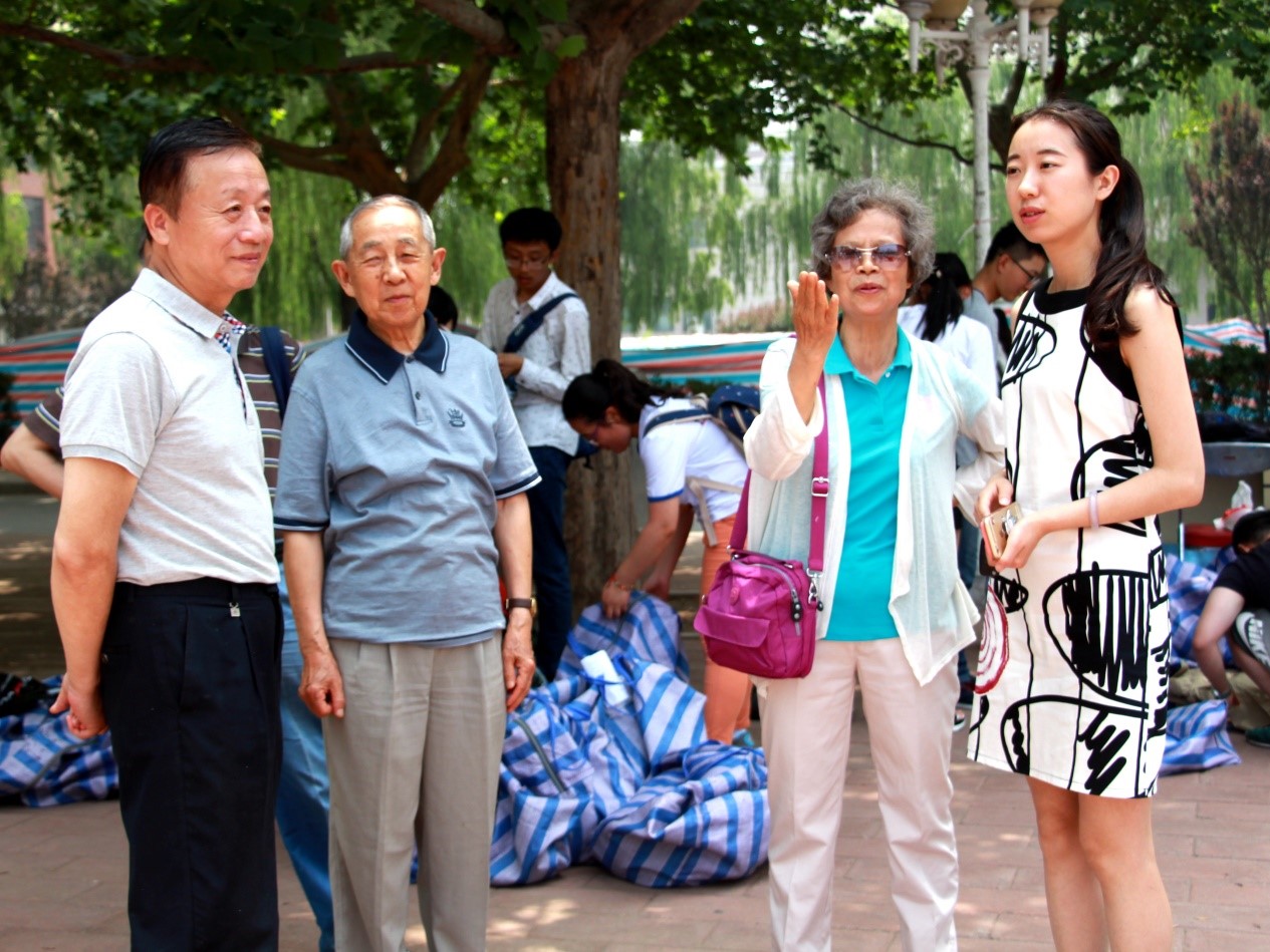 我校前校长、校关工委主任孙维炎在烈日下抵达现场关注学生们的工作,七十九岁高龄的他仍旧心系学生,与在场的志愿者亲切交流。校关工委高中武也向学生们深情讲述了曾在河北省贫困地区中学看到的一幕幕:数九严寒时,女生们站在院子里用凉水浇到头上洗头;宿舍里,只剩三条腿的桌椅垫了砖头仍旧在使用……“孩子们太不容易了,只能尽力去帮助他们”。