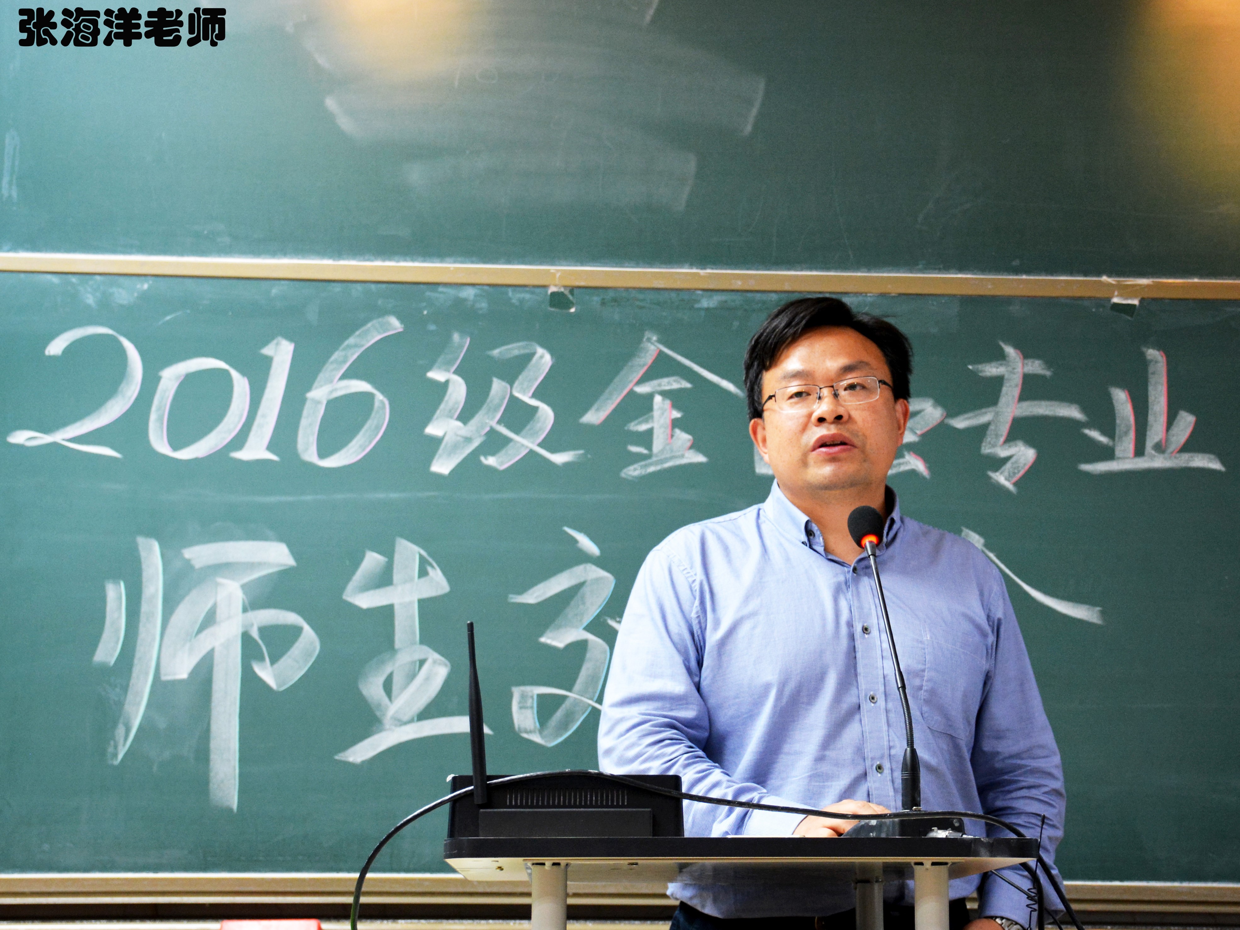 张海洋首先发言。他借助金融学专业核心课程设置顺序表,为金融学专业新生详细介绍了每个课程具体的内容和选课顺序,强调了微观、宏观经济学等核心基础课程的重要性,阐述了高等数学、计算机程序设计等工具的必要性,还特别介绍了金融专业重点建设的银行学课程。张海洋利用图表把金融学专业课程分为五个层次,清晰地展示了课程间的逻辑关系,提醒新生按照培养方案进度选课,充分利用自主权。最后他给新生提出了四点宝贵的建议:根据兴趣,主动学习;拒绝依赖,互相学习;培养能力,学会自学;提高要求,做优秀毕业生。