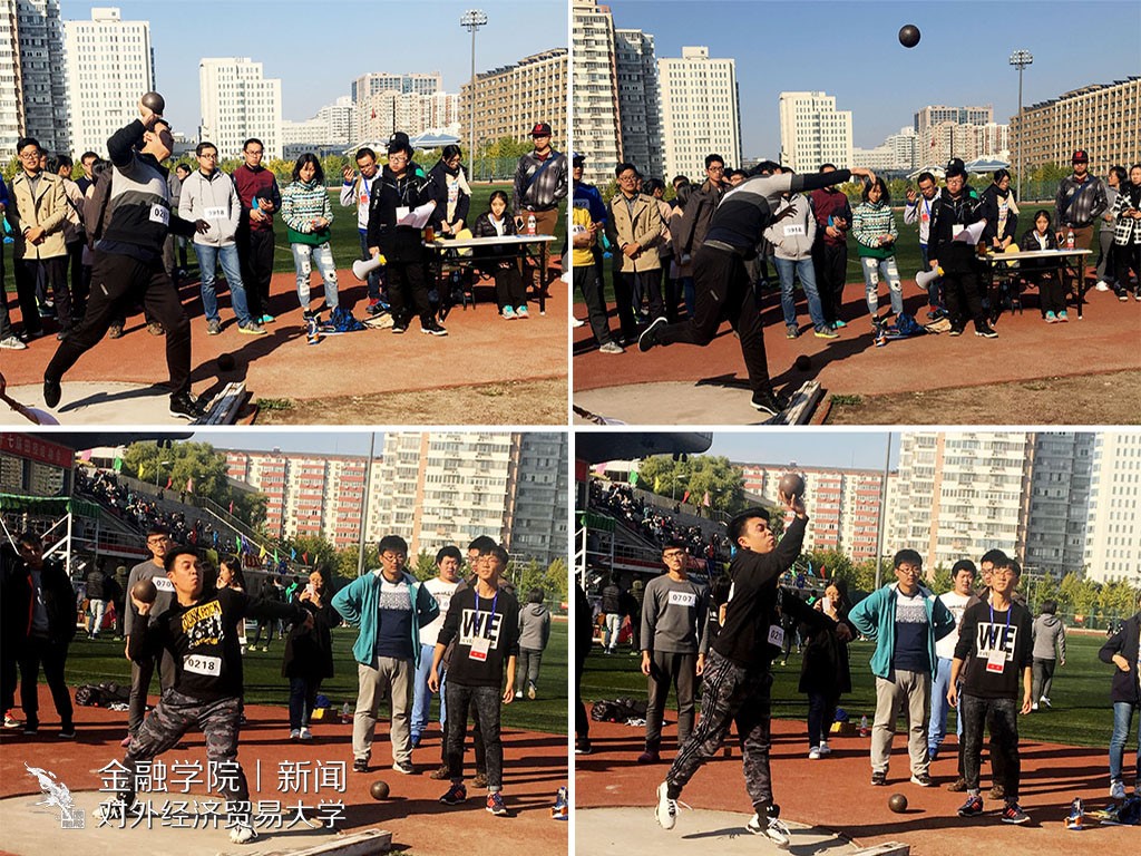 印象最深的是【同心鼓】的比赛。这个比赛需要很高的团队协作能力,需要大家在比赛过程中共同调整、配合,需要不停调整位置和力道,使球落在鼓心,任何一人的力道过猛或者过轻,都会因为力道不均,无法连续击鼓。比赛一开始,大家都沉着冷静,紧紧盯着鼓心,不断调整着位置,队员们一刻也不松懈,耳边尽是不同院系的同学们对于金融队的惊叹和赞赏。金融运动员们发挥的很稳定,其他队伍的鼓几次掉落,但金融仍保持着不败战绩,鼓声总是平稳得响着。即使偶尔出现掉落的情况,队员们也不慌乱,迅速调整好继续比赛,动作利落沉稳。比赛结束,金融以远超其他队伍的成绩稳居小组第一!刚才沉着冷静的队员们全都露出胜利的笑容,欢呼庆祝着,这样的优秀成绩,无愧于每天六点多就起来训练的队员们,这是团队协作的胜利。一同付出,共同收获,声声鼓点,人人同心!