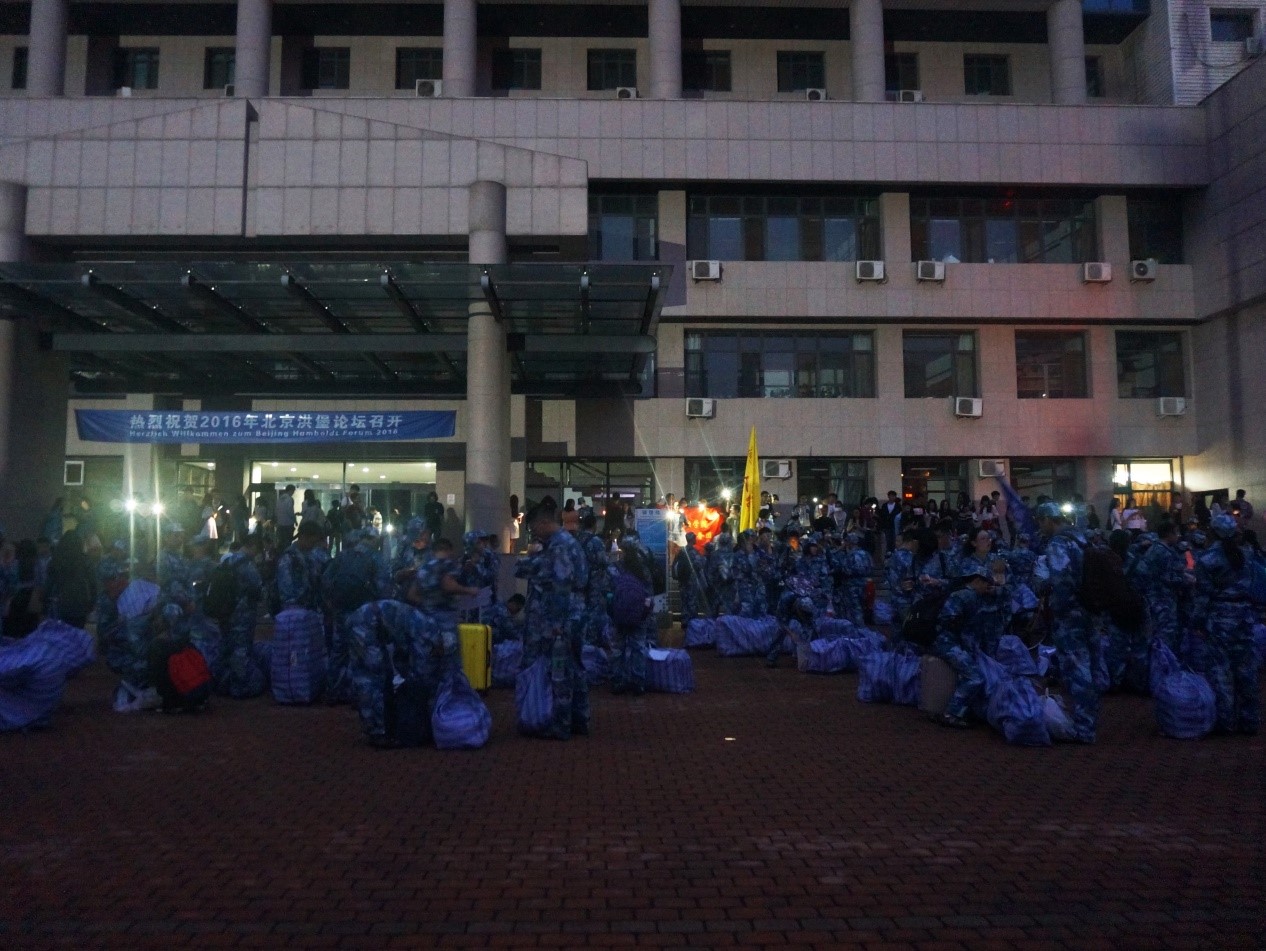 的各院级学生组织干部就来到了军训出发地点,为即将出发的2016级学子带来支持和鼓励。天未亮风微凉,且无灯,每一位老师与学子的心中却似燃着点点烛光,照亮自己,也照亮了每一位整装待发的“小战士”。