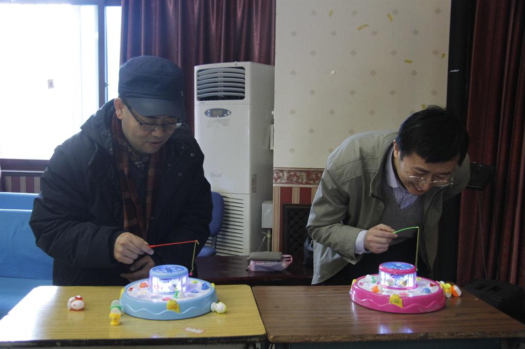 比赛在博学楼多功能厅举行,分工会的工作人员早早来到现场,布置比赛场地、悬挂条幅、摆放食品、饮料,做好了一切准备。上午10点,比赛正式开始。小猫钓鱼、夹玻璃球、踢毽、跳绳、套圈等简单但充满乐趣的比赛项目让老师们乐此不疲,每个项目都要参加一下,成绩不重要,参与才是重要的。比赛间隙,大家交流一年来的教学科研情况,分享自己的有趣经历,氛围轻松而愉快。吴卫星院长、邹亚生书记等学院领导也来到现场参加比赛,并和老师们交流。
