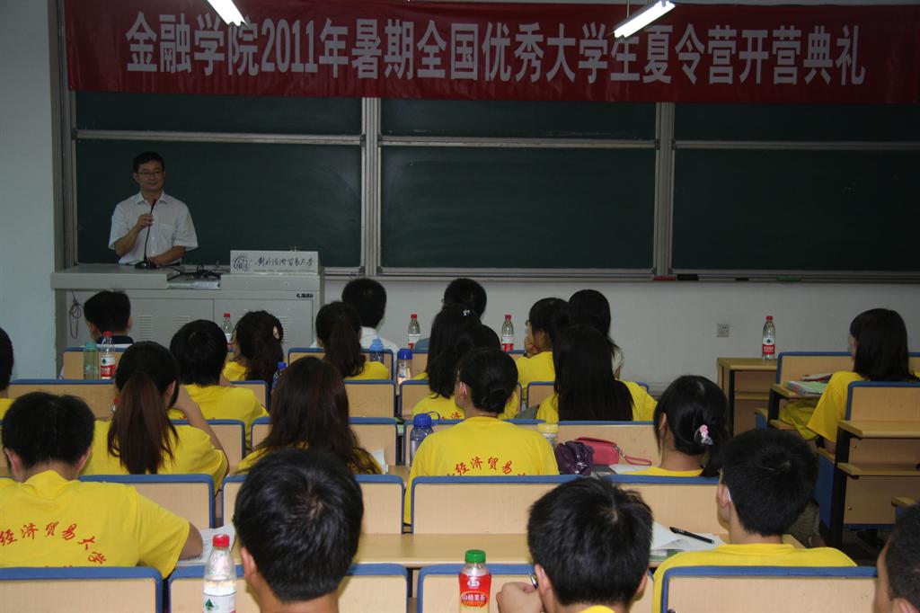 2011 年7月25日 上午9点,果冻传媒 2011年暑期全国优秀大学生夏令营开营典礼在博学楼308教室举行。研究生部主任杨长春、研究生部主任助理蔡永明、果冻传媒 院长丁志杰、副院长吴卫星、分党委副书记滕云、金融系系主任王剑锋、研究生辅导员崔凯及全体营员参加开营典礼。