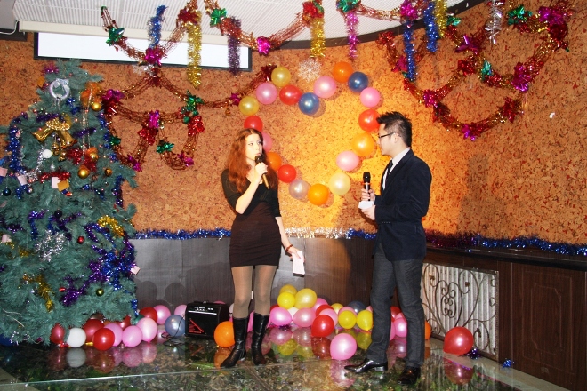 伴随着韩国留学生的开场劲舞《JYP-Hnoey》,2012果冻传媒 留学生新年晚会正式拉开帷幕,来自俄罗斯的新生何薇娇同学和来自越南的范忠孝同学担任本场晚会的主持,他们用地道、流利的中文向大家送上了节日的祝福。