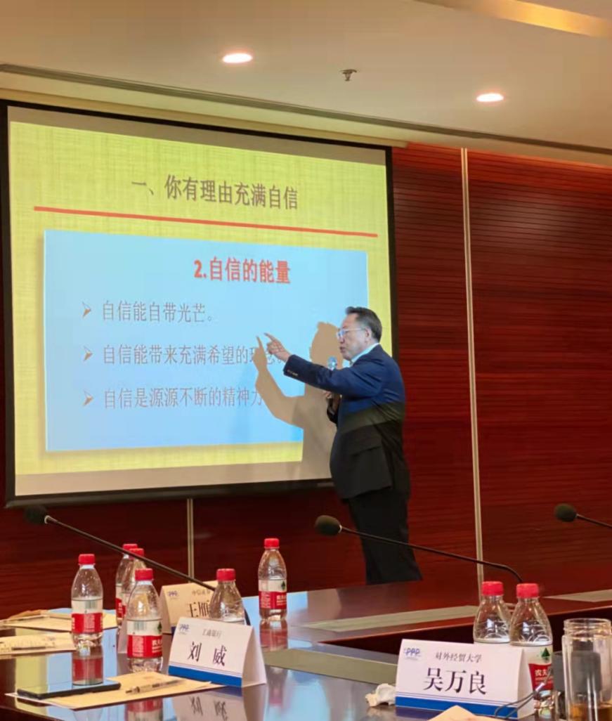 2021年10月10日下午3点,由对外经济贸易大学“一带一路”PPP发展研究中心举办的“金融人才培养座谈会”在我校科研楼5层校董会会议室举行。中国工商银行专项融资部全球融资总经理刘威、中信证券委托财富顾问王雁玲、中国铁建财务部总经理乔国英、万相融通股份公司董事长闫少建、对外经济贸易大学客座教授吴万良出席座谈会。座谈会由PPP中心副主任、果冻传媒 宋琛副教授主持。全校60余名师生参加座谈会。