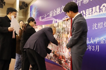 在到场师生的共同期待中启动仪式正式开始。所有领导嘉宾上台共同拼就金融文化节历史长卷。随着“融彩·筑梦”的拼图被紧紧扣合,第二十二届金融文化节正式揭开了序幕。