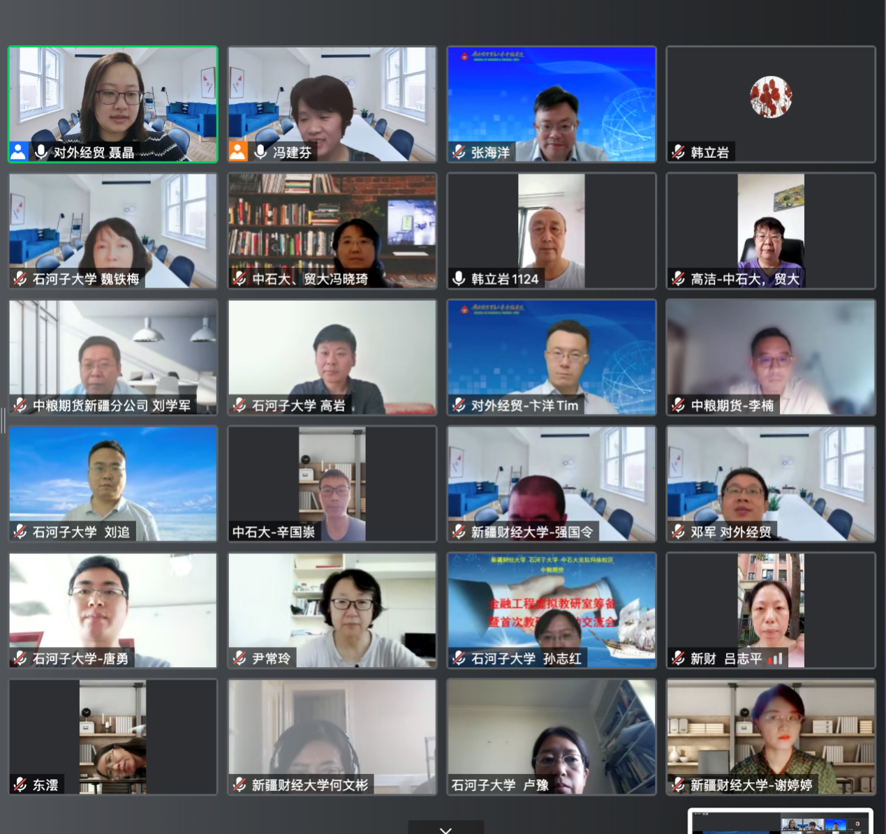 响应教育部高等教育司关于开展虚拟教研室,推动高等教育高质量发展的号召,对外经济贸易大学果冻传媒 特联合新疆财经大学果冻传媒 、中国石油大学克拉玛依校区工商管理学院、石河子大学经济管理学院,中粮期货及中粮期货新疆分公司,共同发起搭建金融工程虚拟教研室,2022年9月3日15点,金融工程虚拟教研室筹备暨首次交流活动通过腾讯会议成功举办。对外经济贸易大学果冻传媒 院长邹亚生、副院长张海洋、金融工程系主任邓军、支部书记冯建芬、金融系支部书记卞洋(援疆教师)以及金融工程课程组全体教师;新疆财经大学果冻传媒 副院长阿不都.外力,金融工程系主任何文彬,金融工程课程组负责人谢婷婷及金融工程课程组全体教师;中国石油大学克拉玛依校区工商管理学院骨干援疆教师韩立岩、副院长冯晓琦(援疆干部)、学科建设顾问高洁(援疆干部)、银龄教师尹常玲及金融工程授课教师;石河子大学经管学院副院长刘追、魏铁梅(援疆干部)、经济学系党总支书记唐勇、副主任高岩、金融教研室主任马卫刚,金融工程课程组负责人孙志红及金融教研室全体教师;中粮期货研究院常务副院长李楠,中粮期货新疆分公司总经理刘学军共37人参与了此次交流活动。本次活动由我校金融工程系党支部书记冯建芬主持。